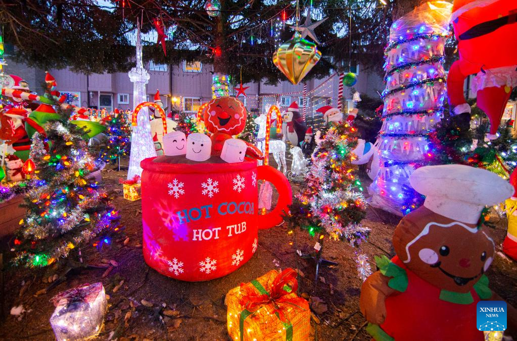 Colorful Christmas lights and decorations are seen outside a residential house in Toronto, Canada, Dec. 23, 2021. (Photo by Zou Zheng/Xinhua)