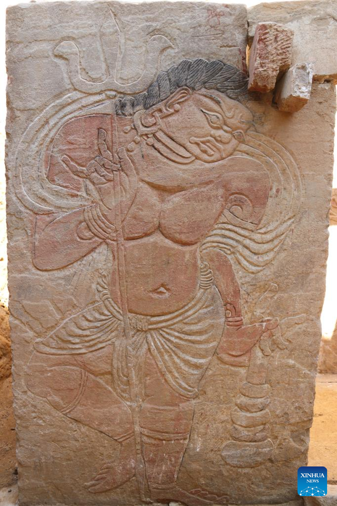 Experts noted that on the southern side of the outer coffin are carved images of two tomb-guarding warriors -- dressed in exotic clothes, bare-chested and holding tridents.