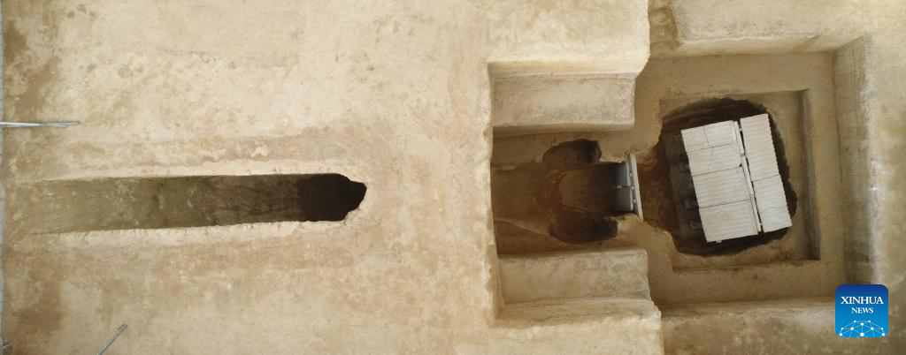 This undated aerial photo provided by the Shanxi Provincial Institute of Archaeology shows the excavation site of an ancient tomb in Datong City, north China's Shanxi Province. (Shanxi Provincial Institute of Archaeology/Handout via Xinhua)