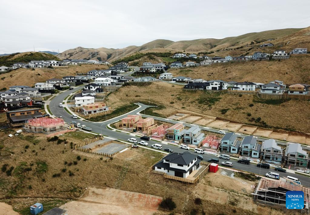 File aerial photo taken on April 9, 2021 shows a residential construction site in Wellington, New Zealand. The average value of a New Zealand home now exceeds 1 million New Zealand dollars for the first time, according to statistics released by CoreLogic's House Price Index (HPI) on Jan. 5, 2022.(Xinhua/Guo Lei)