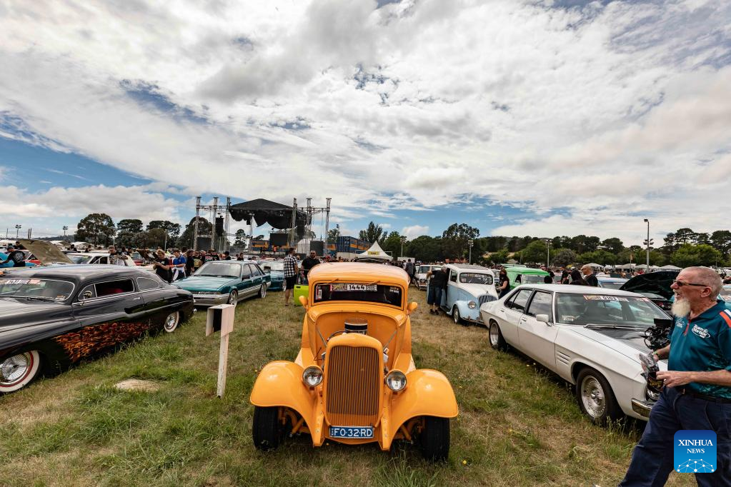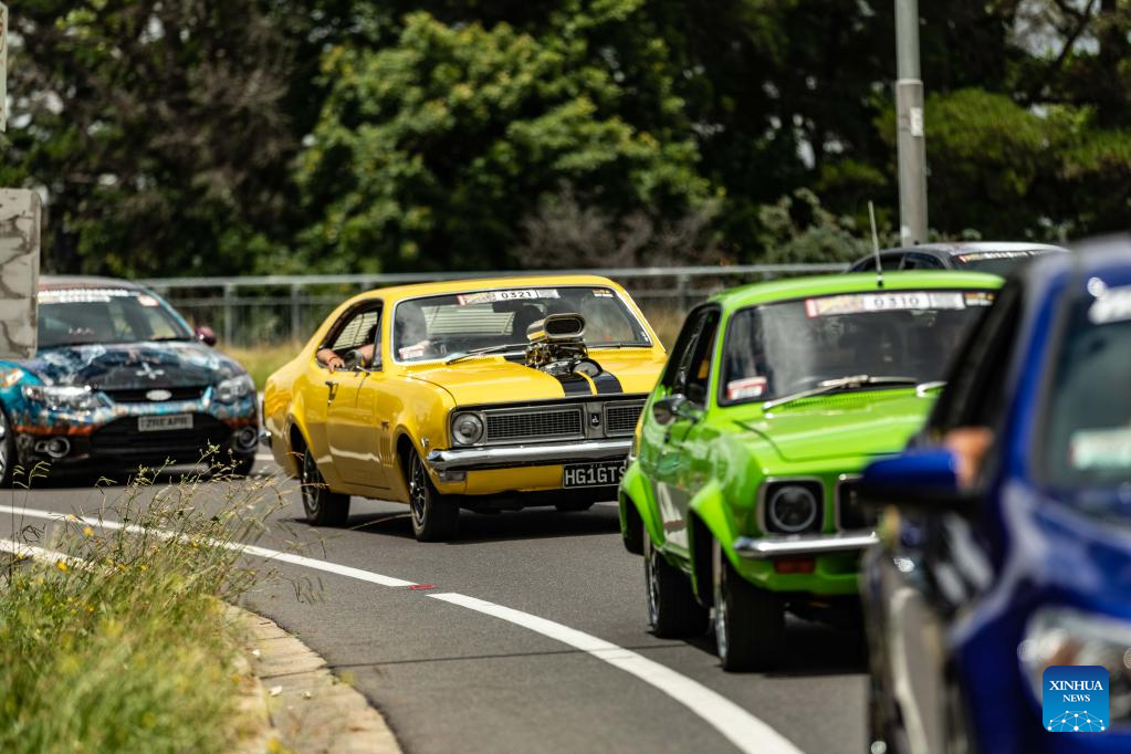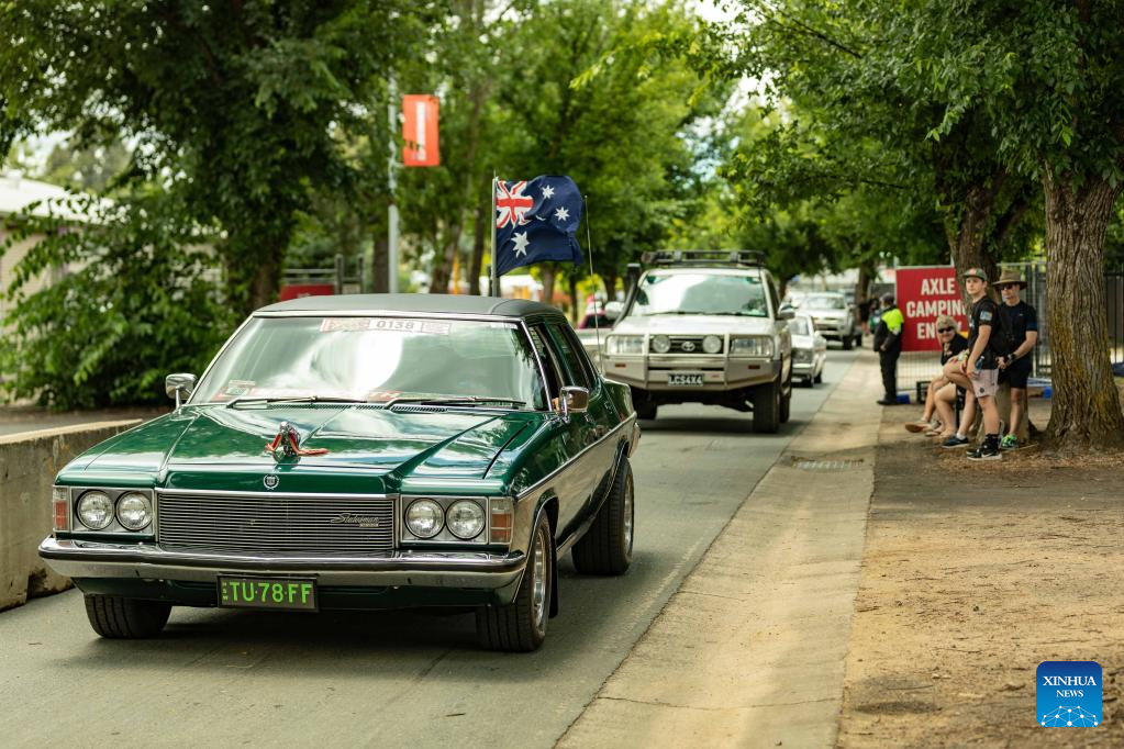 CANBERRA, Jan. 6 (Xinhua) -- Despite the weather forecast of rain, hundreds of people in Australia's capital Canberra came out on Thursday morning, sitting on benches or mats along Northbourne Avenue and waiting for the start of a street cruise.