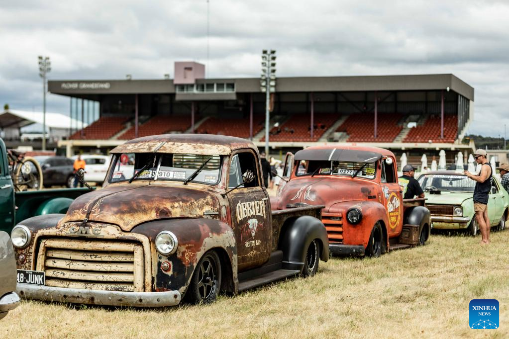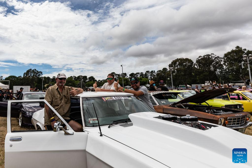 Cars are exhibited during the Summernats Car Festival in Canberra, Australia, Jan. 6, 2022. The Summernats Car Festival kicked off on Thursday in Canberra. (Photo by Chu Chen/Xinhua)