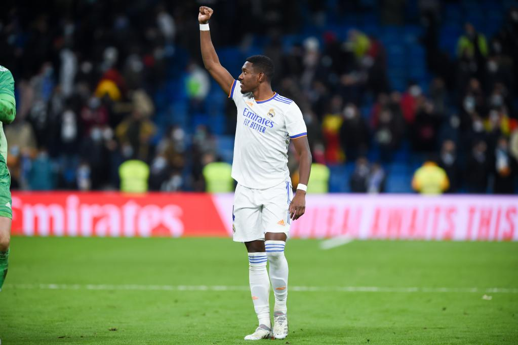 Real Madrid's David Alaba celebrates the victory after a Spanish first division league football match between Real Madrid and Valencia CF in Madrid, Spain, Jan. 8, 2021. (Photo by Gustavo Valiente/Xinhua)