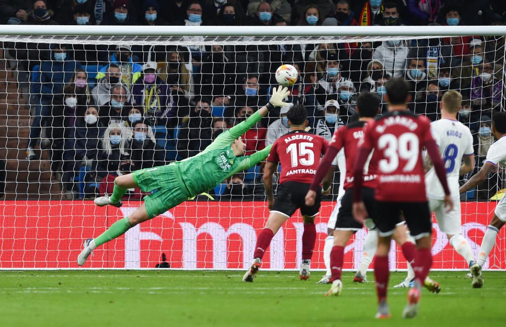 Goncalo Guedes pulled a goal back after Thibaut Courtois had blocked his initial penalty, but there was still time for Benzema to add his second of the night two minutes from time.
