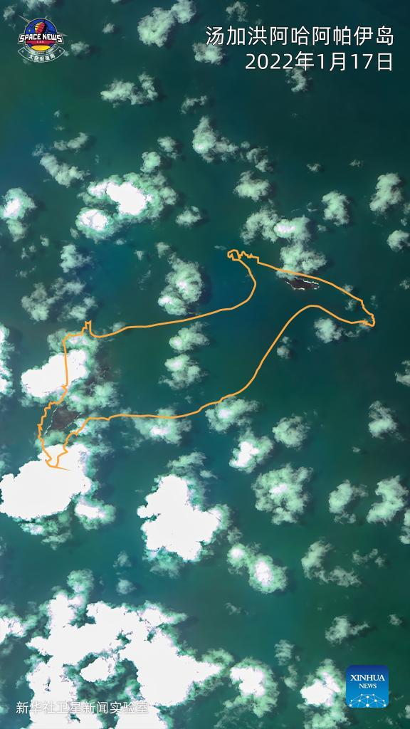 A satellite image shows Tonga's Hunga Ha'apai island after a violent eruption of a volcano on Jan. 17, 2022. (Xinhua's Space News Lab/Handout via Xinhua)