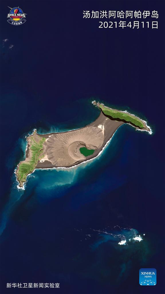A satellite image shows Tonga's Hunga Ha'apai island before a violent eruption of a volcano on Apr. 11, 2021. (Xinhua's Space News Lab/Handout via Xinhua)