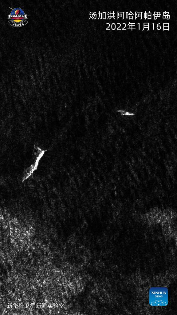 A Synthetic Aperture Radar (SAR) satellite image shows Tonga's Hunga Ha'apai island after a violent eruption of a volcano on Jan. 16, 2022. (Xinhua's Space News Lab/Handout via Xinhua)