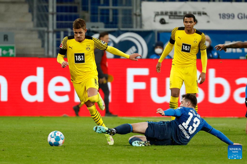 BERLIN, Jan. 22 (Xinhua) -- Runner-up Borussia Dortmund clinched its third straight win in the Bundesliga after seeing off fourth placed Hoffenheim 3-2 at the 20th round on Saturday.