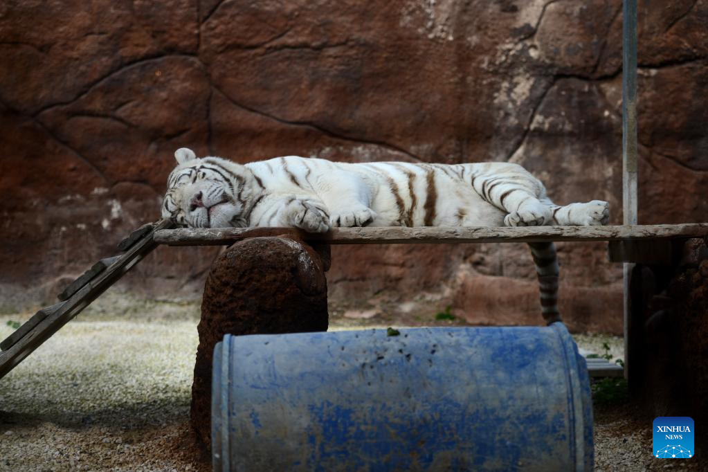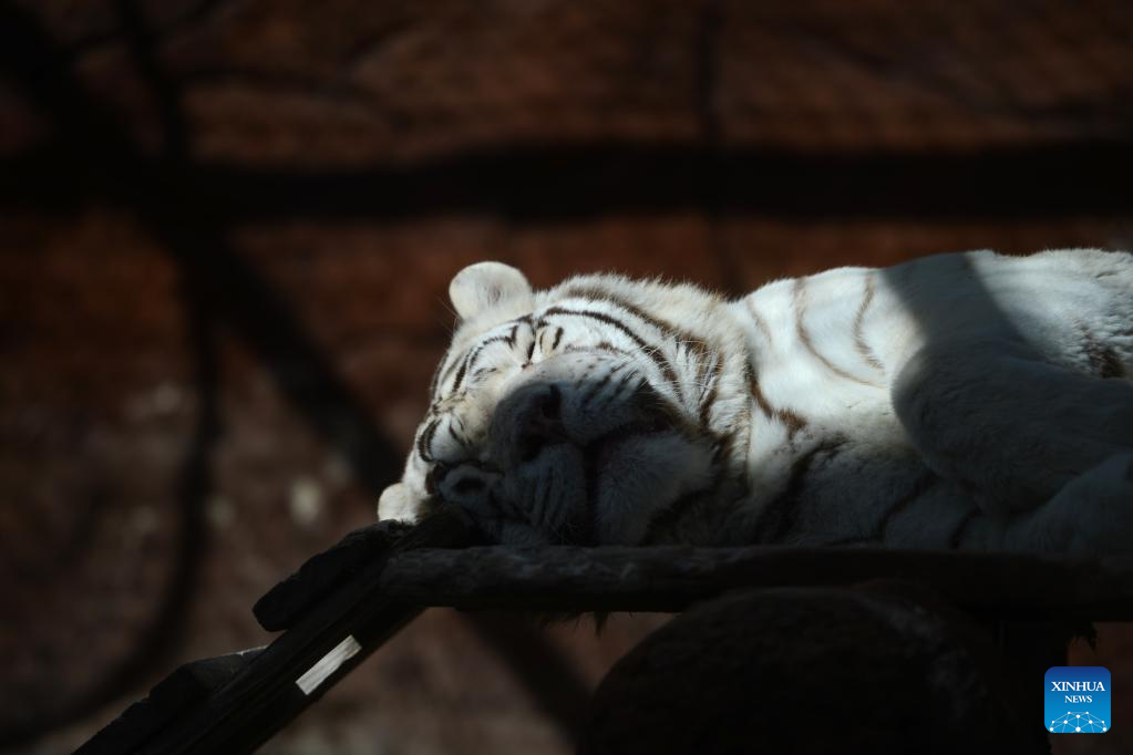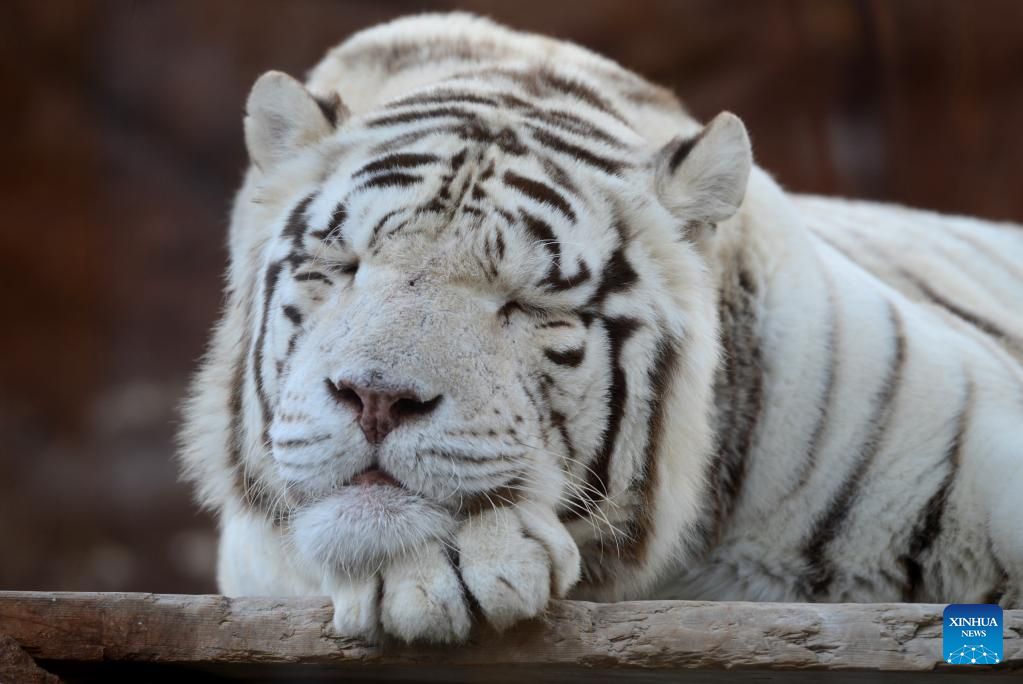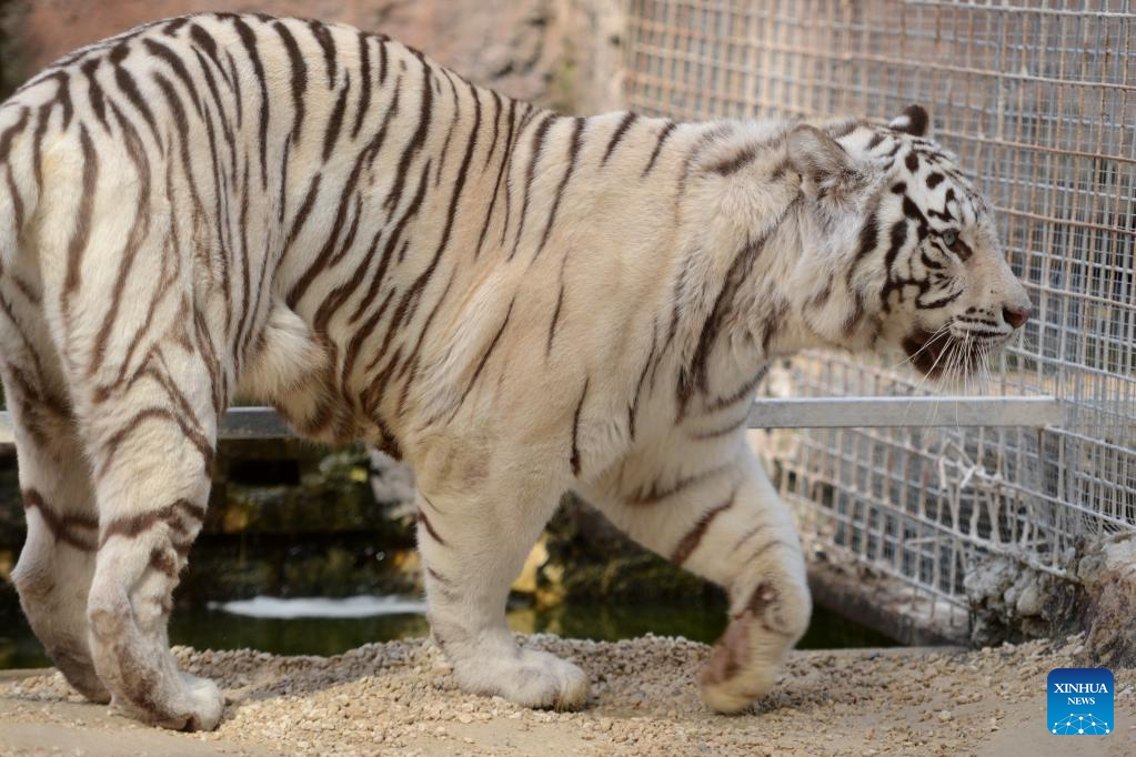 Photo taken on Jan. 22, 2022 shows a tiger living at Wildlife Park Malta in Rabat, Malta. (Photo by Jonathan Borg/Xinhua)