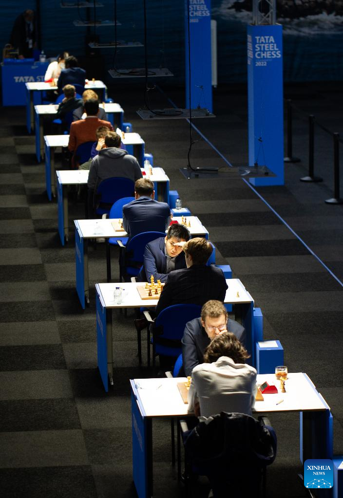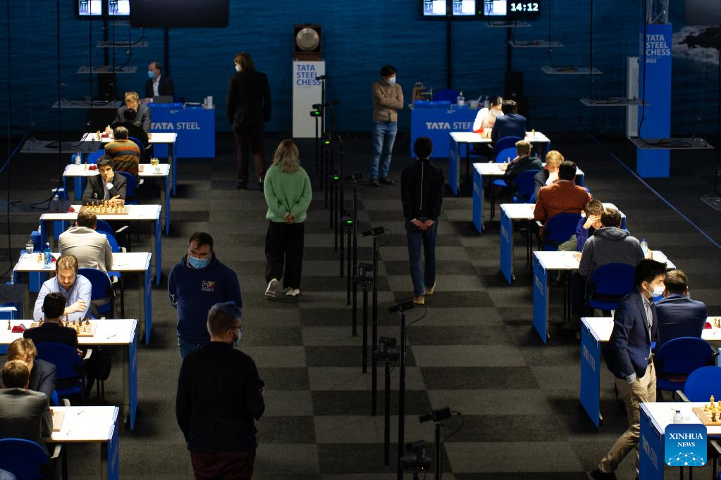 The Tata Steel Chess Tournament 2022 enters into the 9th round in Wijk aan Zee, the Netherlands, Jan. 25, 2022. (Photo by Sylvia Lederer/Xinhua)