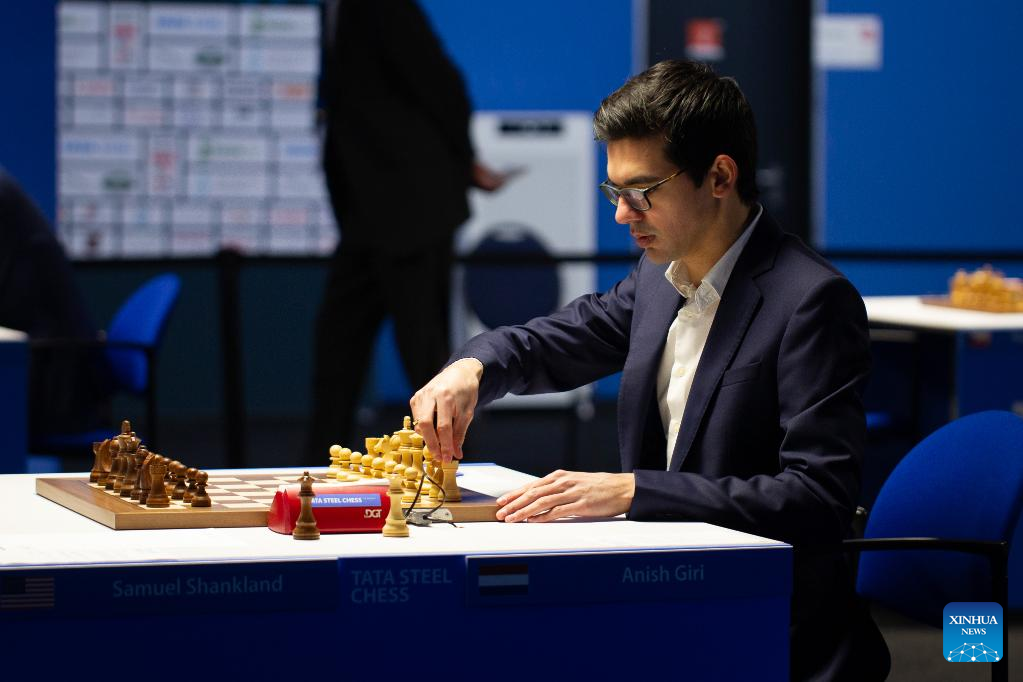 Anish Giri of the Netherlands competes during the 9th round of the Tata Steel Chess Tournament 2022 in Wijk aan Zee, the Netherlands, Jan. 25, 2022. (Photo by Sylvia Lederer/Xinhua)