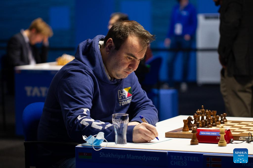 Shakhriyar Mamedyarov of Azerbaijan competes during the 9th round of the Tata Steel Chess Tournament 2022 in Wijk aan Zee, the Netherlands, Jan. 25, 2022. (Photo by Sylvia Lederer/Xinhua)