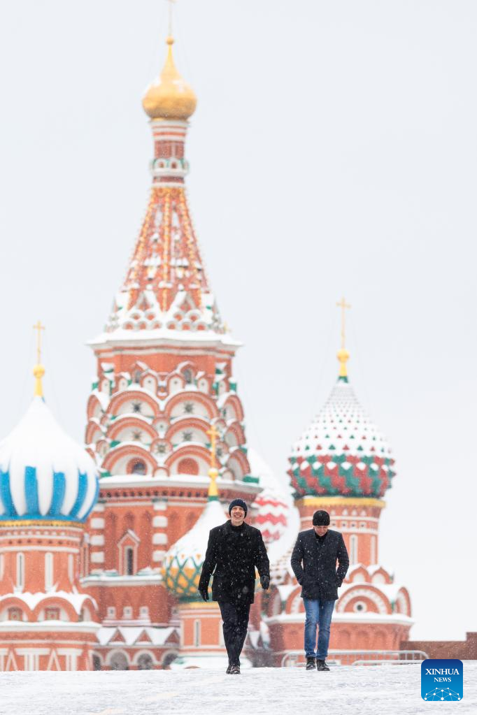 People walk in the Red Square in Moscow, Russia, on Jan. 26, 2022. (Xinhua/Bai Xueqi)