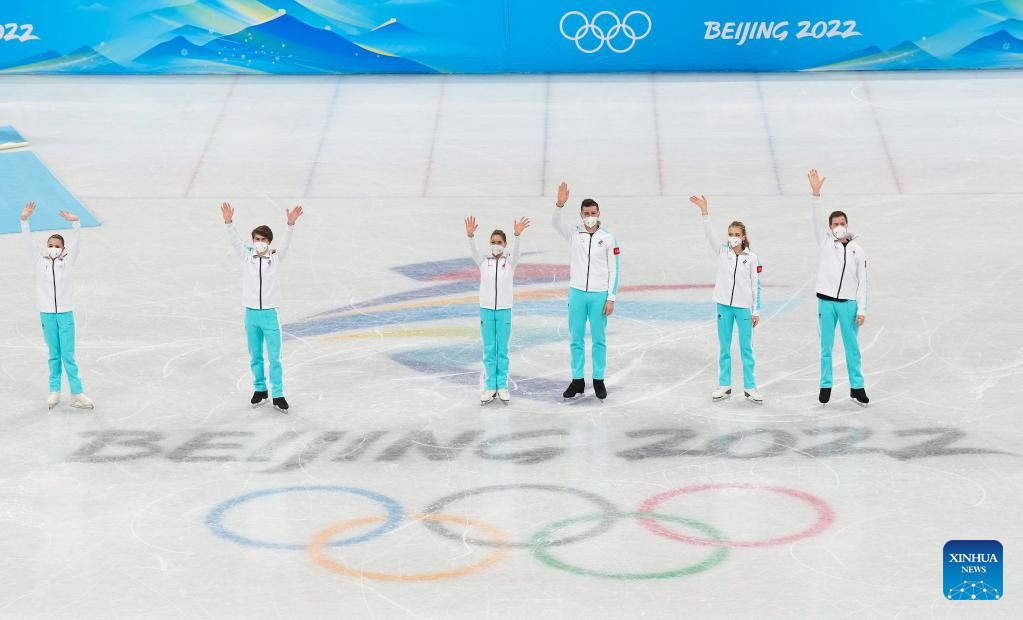 BEIJING, Feb. 7 (Xinhua) -- Athletes from the Russian Olympic Committee restated their dominance over figure skating and were crowned at team event here on Monday, while China on fifth after qualifying for free skate for the first time at Beijing 2022.