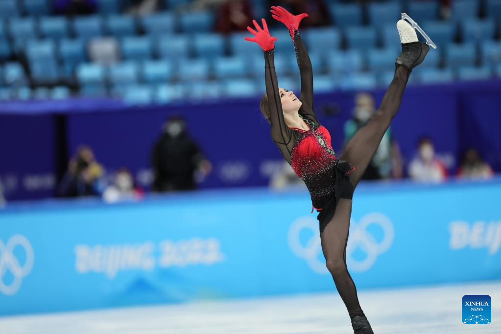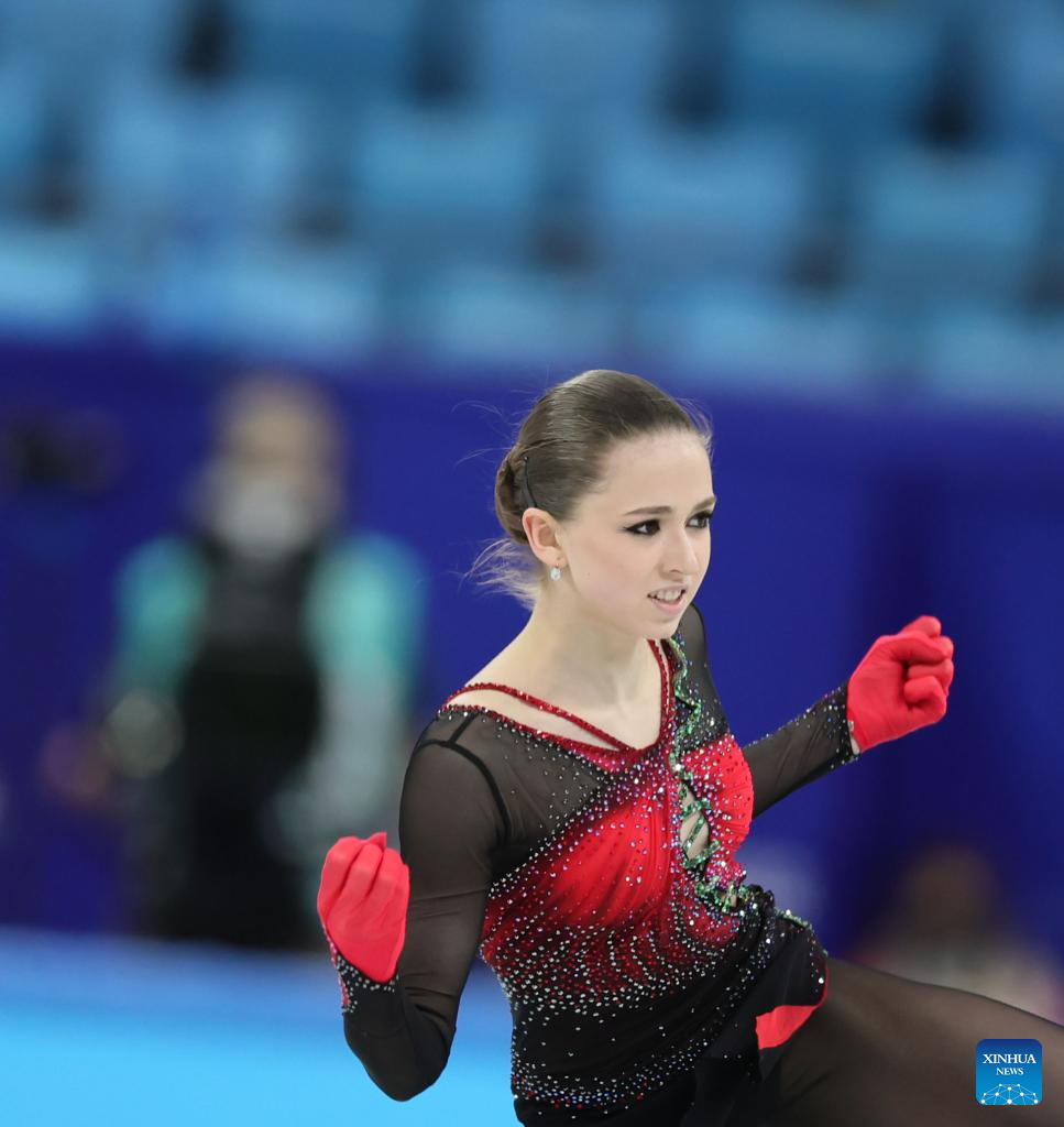 Kamila Valieva of ROC performs during the figure skating team event ice dance free dance at Capital Indoor Stadium in Beijing, capital of China, Feb. 7, 2022. (Xinhua/Lan Hongguang)
