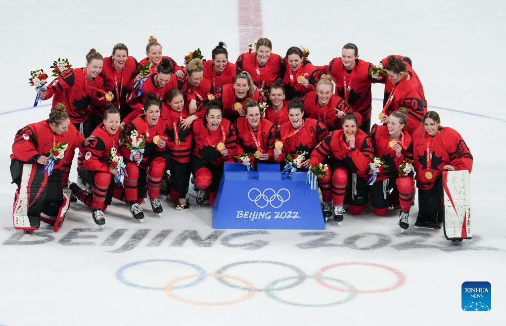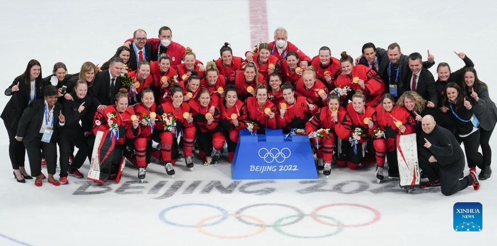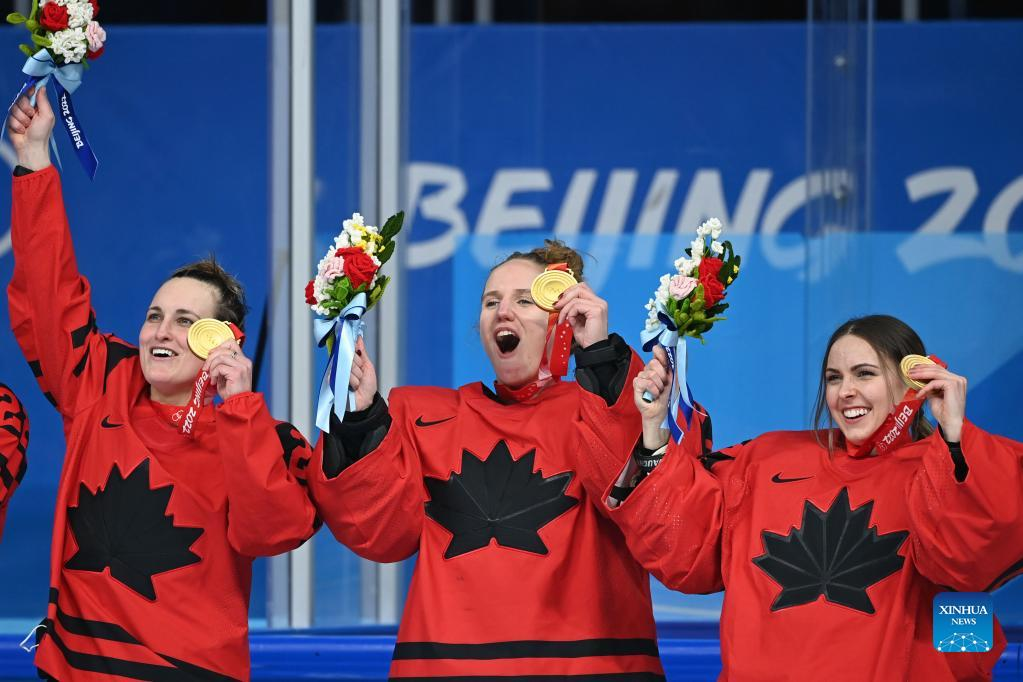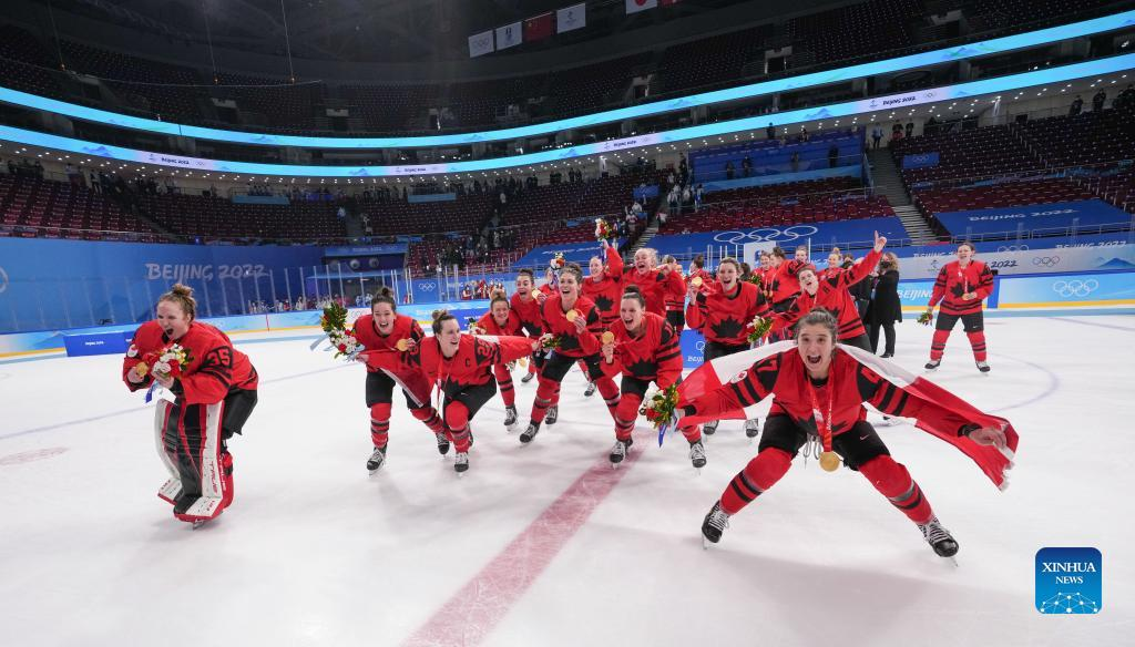 BEIJING, Feb.17 (Xinhua) -- Canadian women's ice hockey team took down the defending champion the United States 3-2 in the final to get their fifth Olympic title at the Beijing Winter Olympics on Thursday.