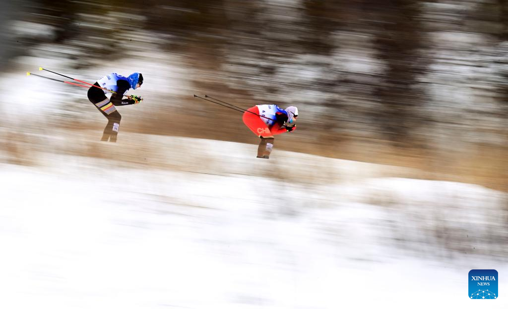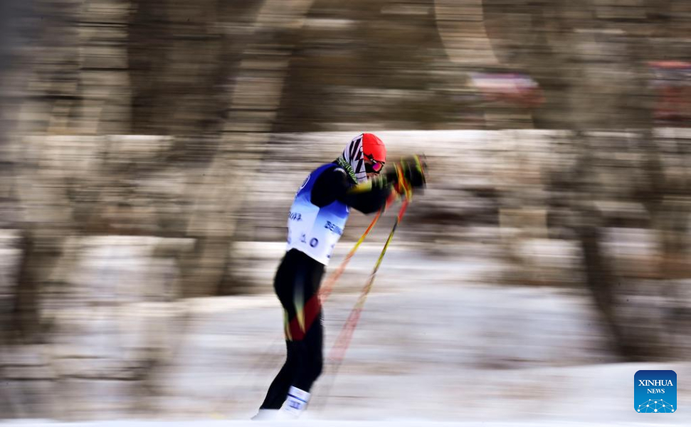 Hadesi Badelihan of China competes during the cross-country skiing men's 50km mass start free of Beijing 2022 Winter Olympics at National Cross-Country Skiing Centre in Zhangjiakou, north China's Hebei Province, Feb. 19, 2022. The men's 50km cross-country mass start race on Saturday has been delayed by an hour to 1500 local time (0700 GMT) and shortened to 30km due to high winds at the National Cross-Country Skiing Centre. (Xinhua/Deng Hua)