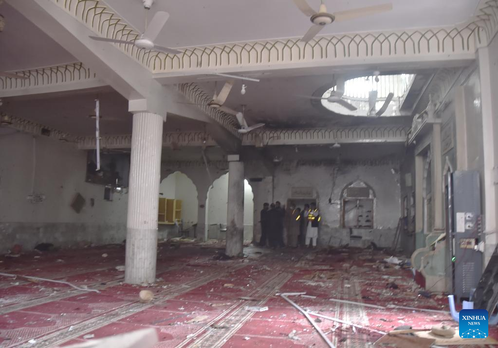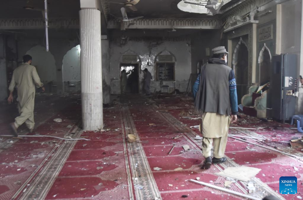 Haroon Rasheed, senior superintendent of police operations of Peshawar, told Xinhua that two terrorists tried to enter the mosque and engaged in an exchange of fire with the police personnel on duty there, resulting in the death of one policeman. Another police officer was seriously injured before the huge explosion occurred.