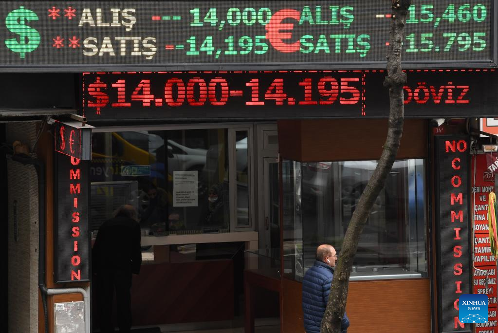 Photo taken on March 3, 2022 shows a currency exchange point in Istanbul, Turkey. (Xinhua/Shadati)