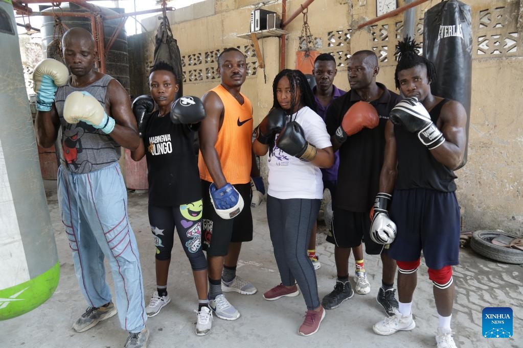 Tanzanian woman boxer Pendo Njau poses for a photo with other boxers in Der es Salaam, Tanzania on March 4, 2022. Pendo Njau, a mother of three children, is a boxer, a boxing referee and a boxing judge based in Tanzania's commercial capital Dar es Salaam.(Photo by Herman Emmanuel/Xinhua)