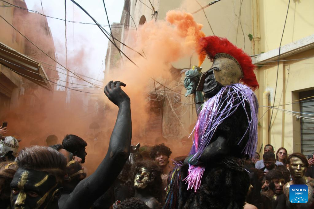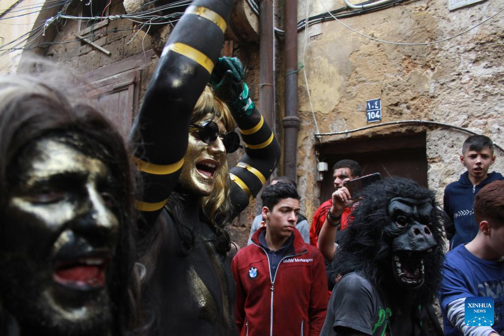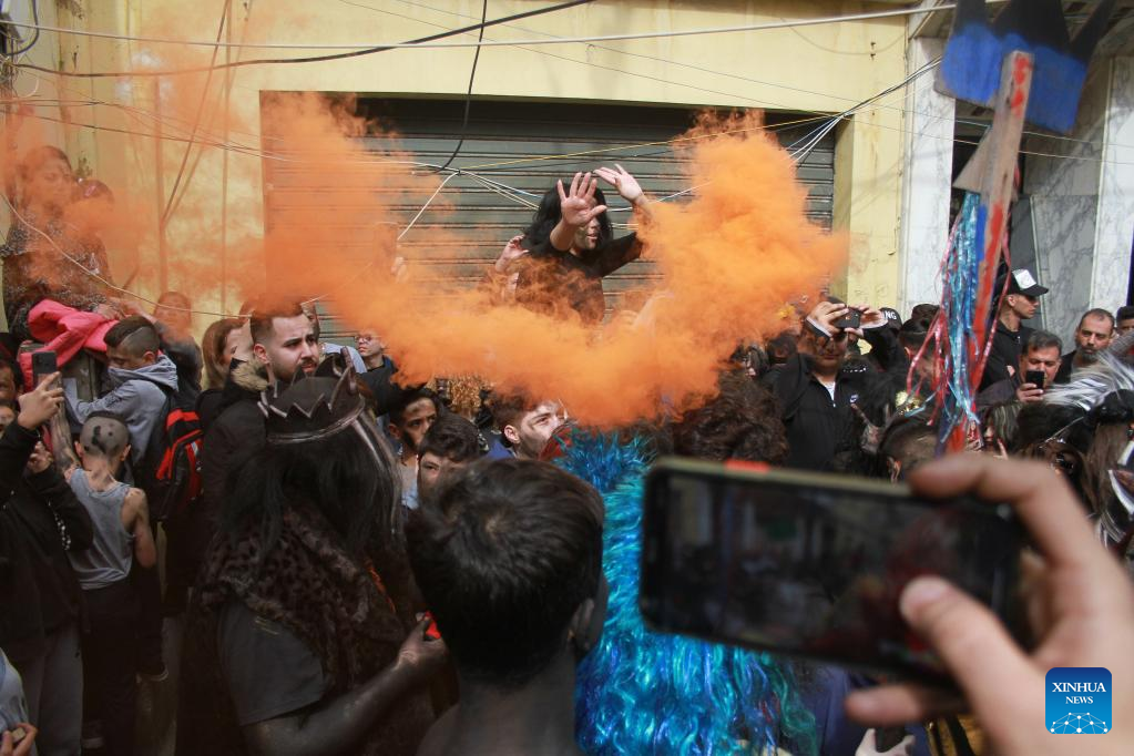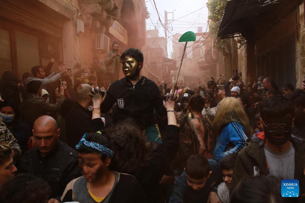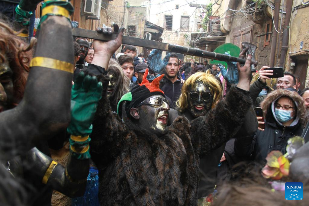 People take part in a celebration of the traditional Zambo Carnival in El-Mina, northern Lebanon, on March 6, 2022. (Photo by Khaled Habashiti/Xinhua)