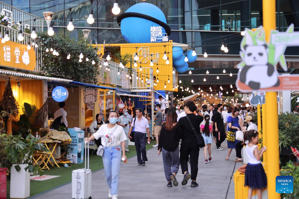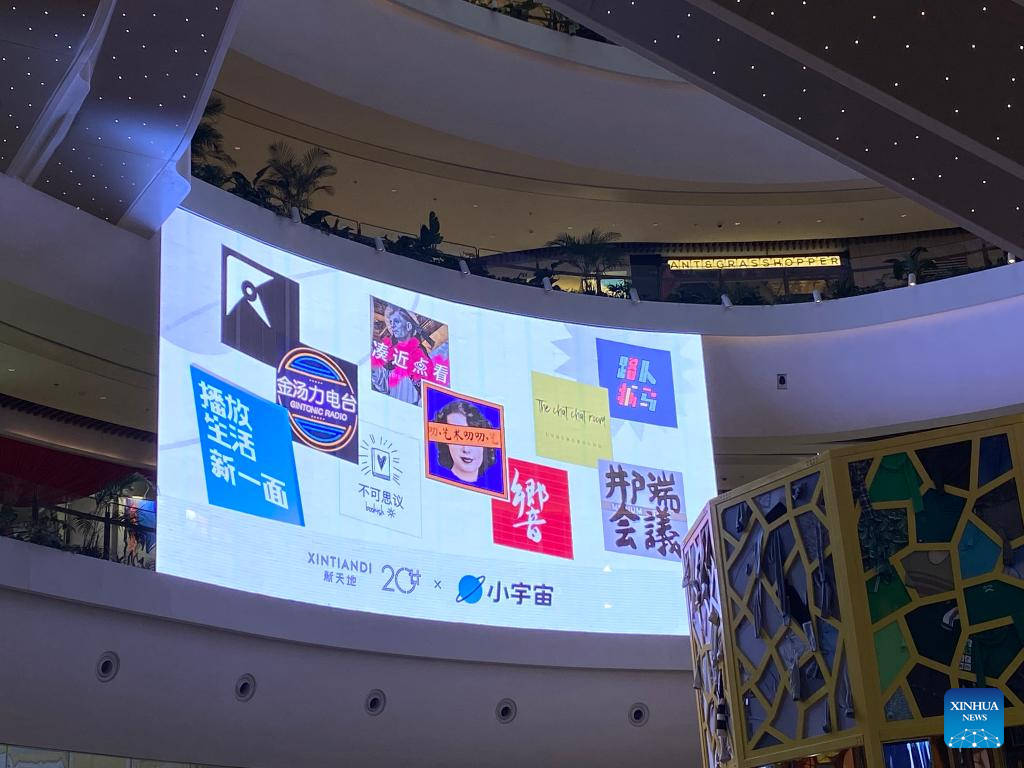 Photo taken on Oct. 1, 2021 shows an offline show launched by podcast app Xiaoyuzhoufm in Shanghai, east China. (Xinhua)