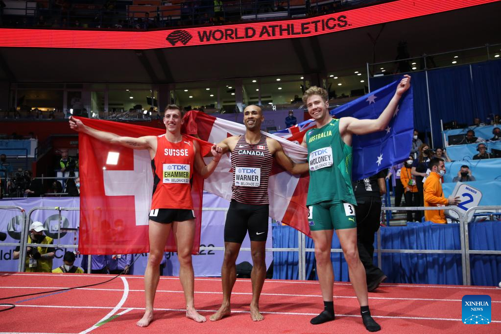 BELGRADE, March 19 (Xinhua) -- Another ten gold medalists, including Olympic champion Damian Warner and world champion Sandi Morris, emerged at the World Athletics Indoor Championships in Belgrade on Saturday.