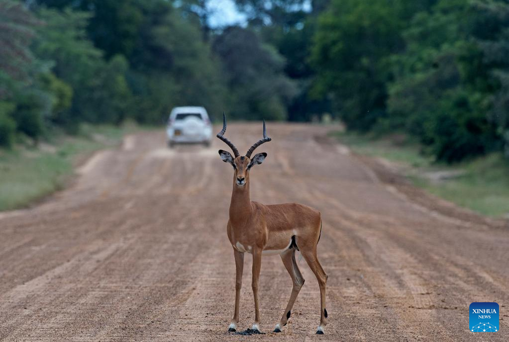A Springbok stands on a road at the Bwabwata National Park of Namibia, on March 21, 2022. (Xinhua/Chen Cheng)