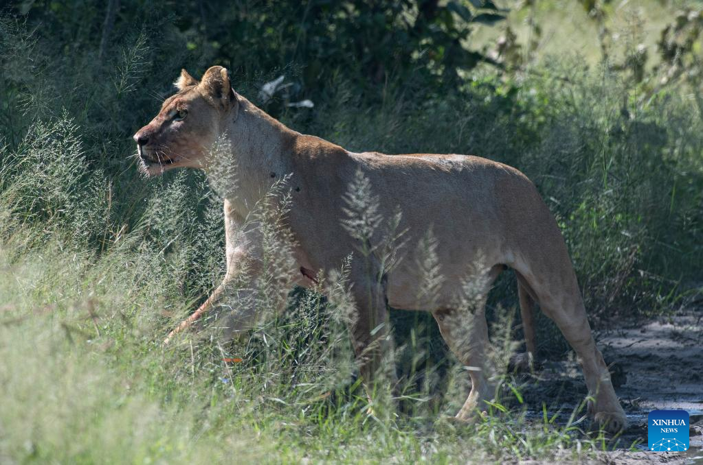 A female lion is seen at the Bwabwata National Park of Namibia, on March 22, 2022. (Xinhua/Chen Cheng)