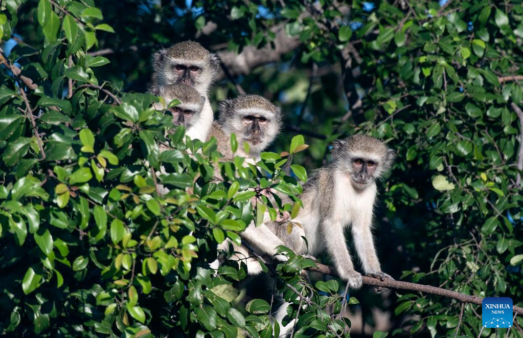 Vervet monkeys are seen at the Bwabwata National Park of Namibia, on March 22, 2022. (Xinhua/Chen Cheng)