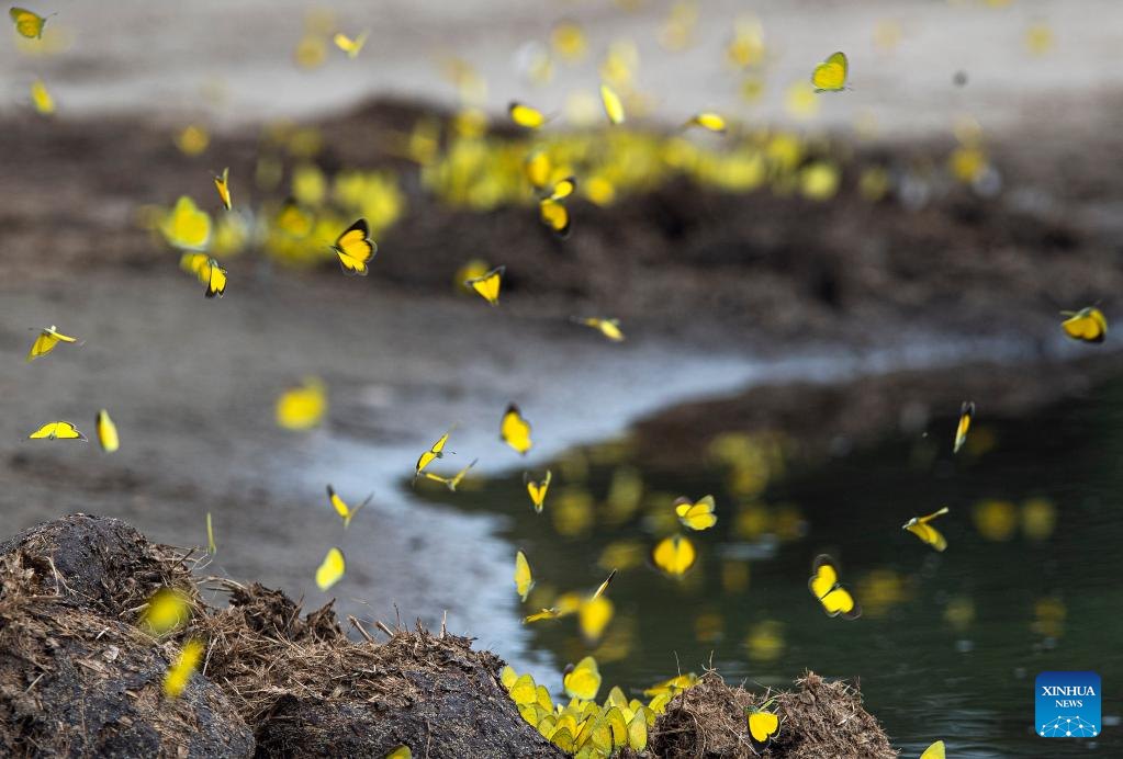 Butterflies fly over a pond at the Bwabwata National Park of Namibia, on March 21, 2022. (Xinhua/Chen Cheng)