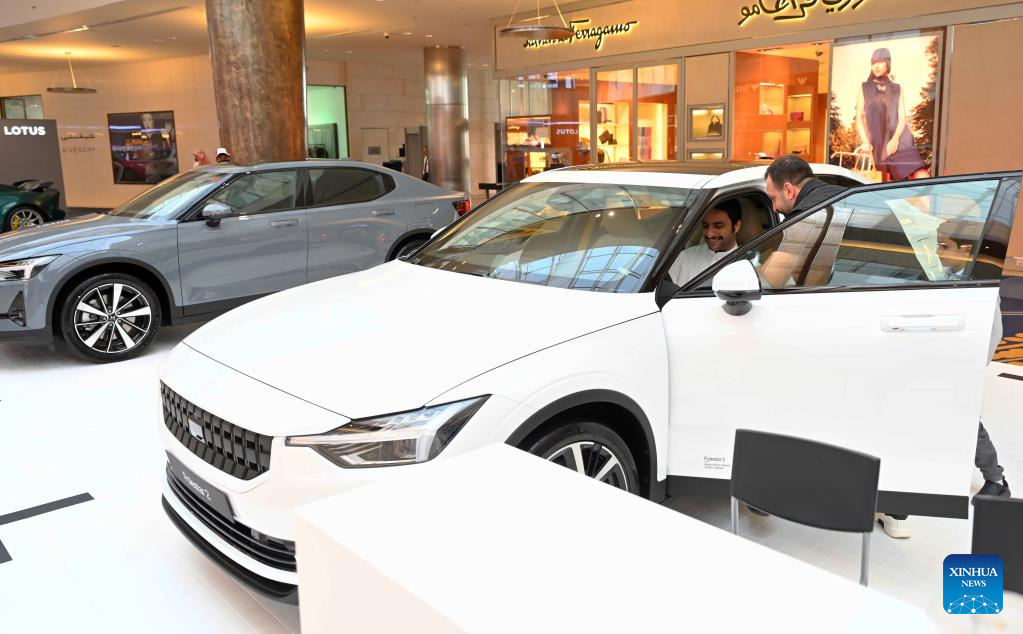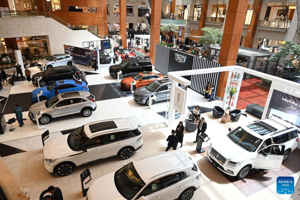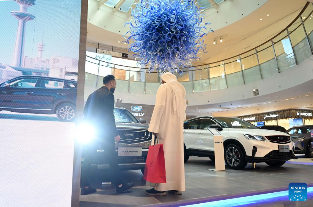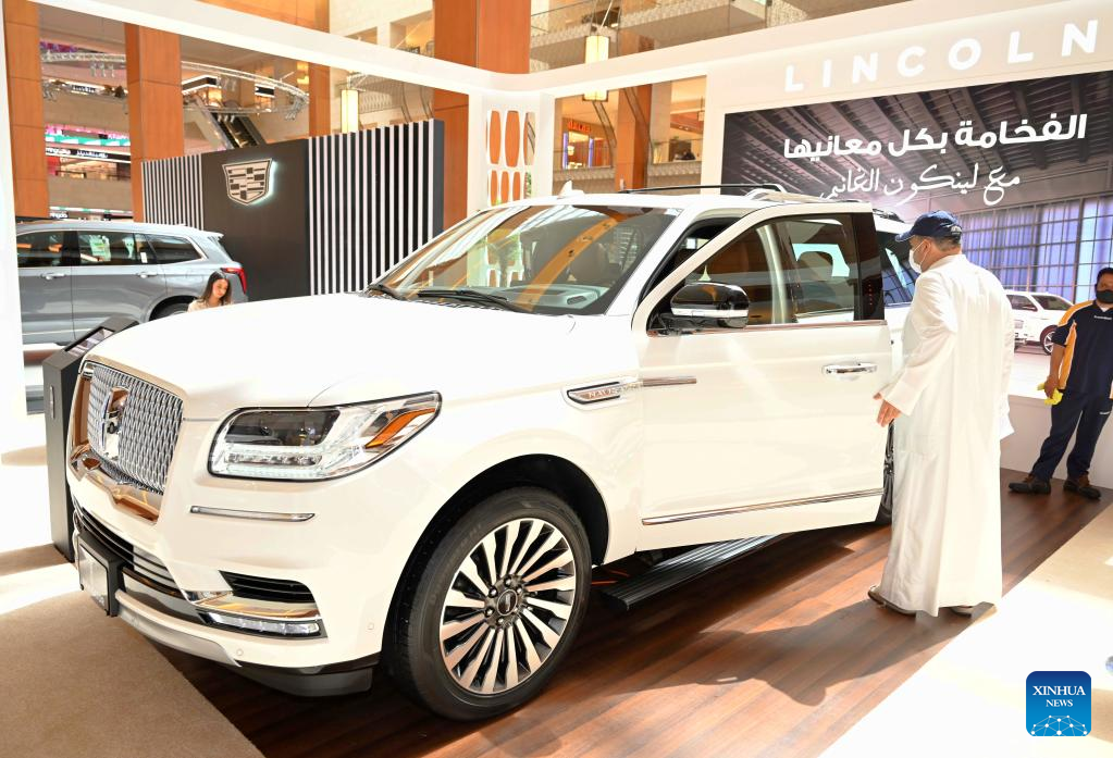 Photo taken on March 23, 2022 shows a motor show in Hawalli Governorate, Kuwait. The Kuwait Motor Show 2022, which will last until April 1, opened in Hawalli Governorate on Wednesday. (Photo by Asad/Xinhua)