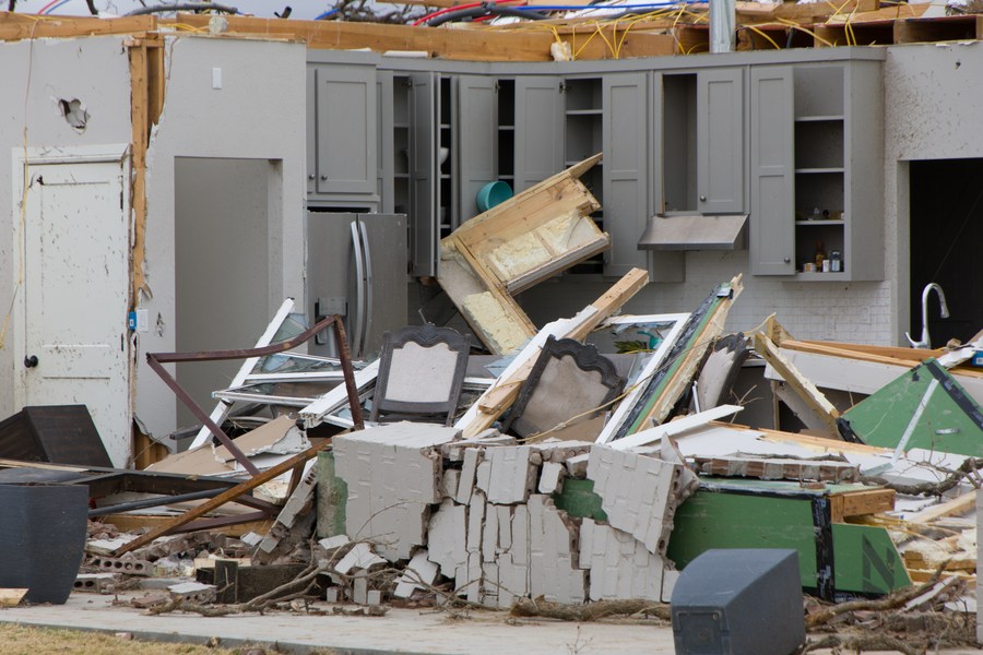 Photo taken on March 22, 2022 shows a house damaged by a tornado in Jacksboro, northern Texas, the United States. (Photo by Dan Tian/Xinhua)