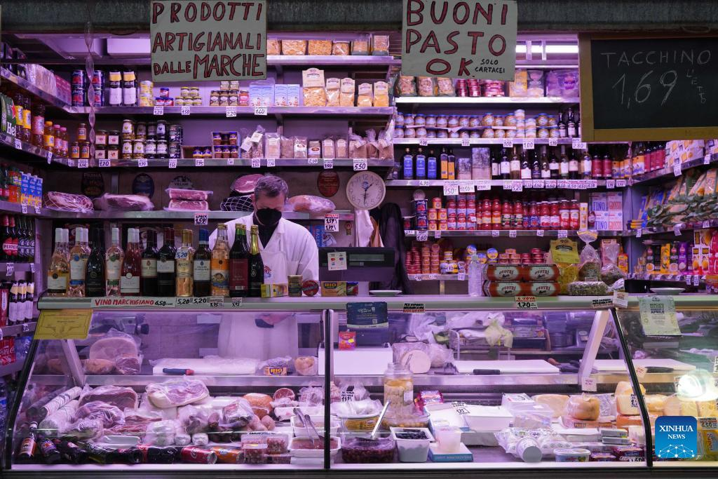 A customer shops at a market in Rome, Italy, April 2, 2022. Italy is among the countries hardest hit by the ongoing conflict between Russia and Ukraine, with rising energy prices weighing heavily on the country's post-pandemic economic recovery. This week, the ratings company Standard & Poor's revised the annual growth rate for the Italian economy down from 4.7 percent to 3.1 percent, in the light of the conflict and "the resulting surge in commodity prices." (Xinhua/Jin Mamengni)