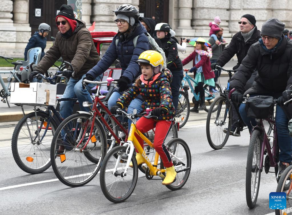 People ride bikes during the Argus Bike Festival in Vienna, Austria, April 3, 2022.