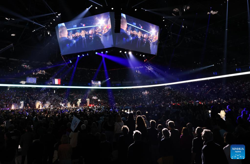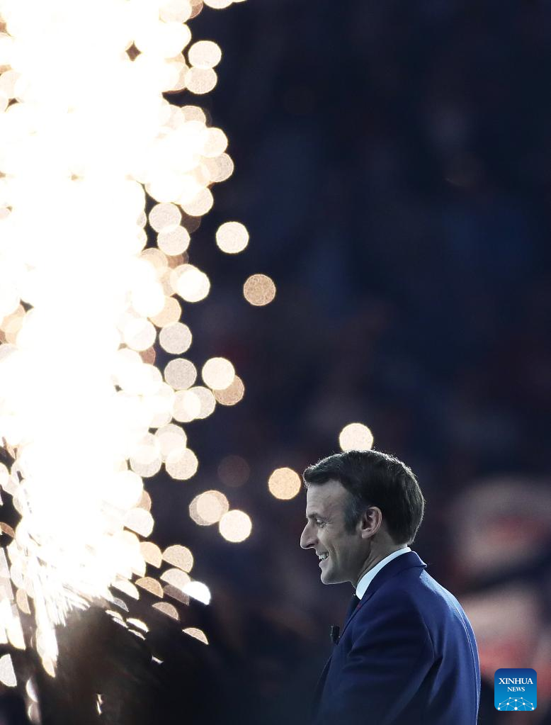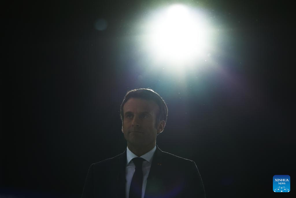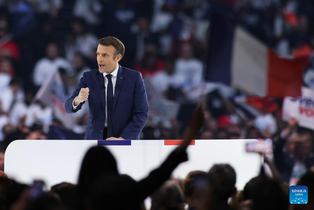 Emmanuel Macron on Saturday held an election rally for his re-election in the upcoming presidential election scheduled for April. (Xinhua/Gao Jing)