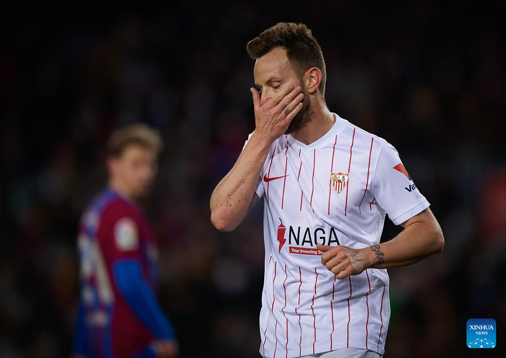 Sevilla's Ivan Rakitic reacts during a La Liga Santander match between FC Barcelona and Sevilla FC in Camp Nou, Barcelona, Spain, on April 3, 2022. (Photo by Pablo Morano/Xinhua)