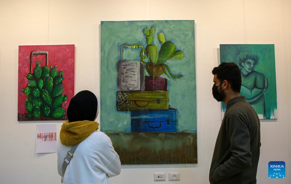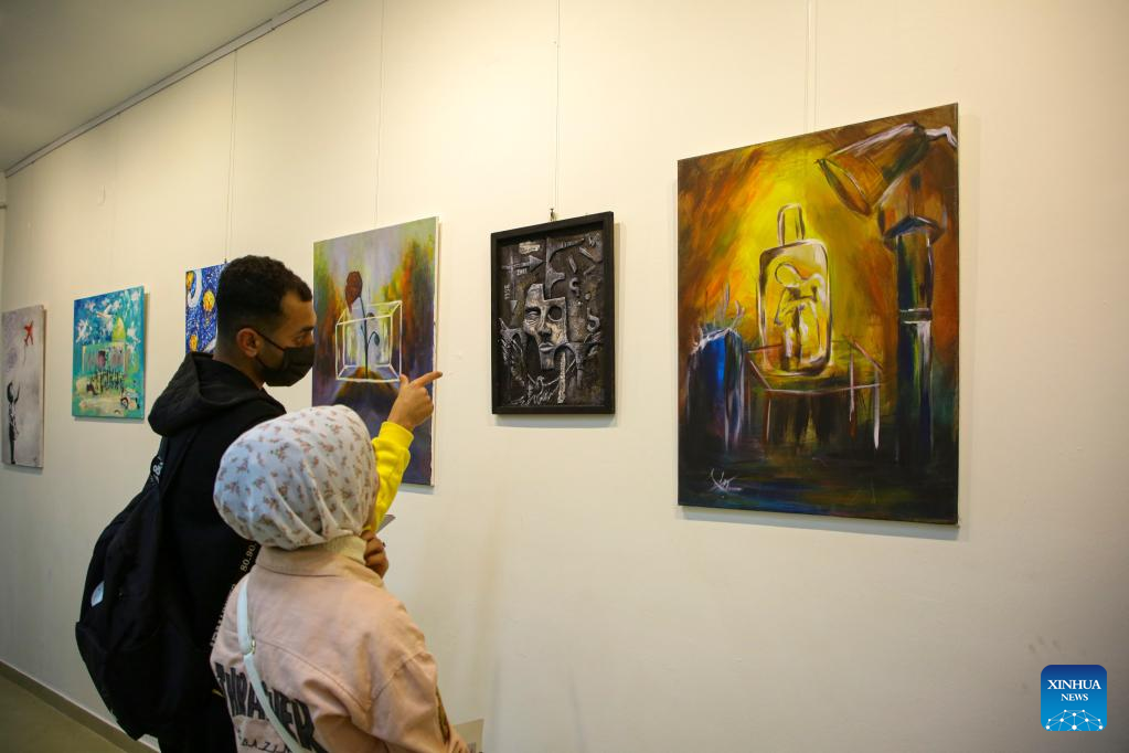 People visit the exhibition "Gaza International Airport" organized by the Tamer Foundation for Community Education in Gaza City, March 27, 2022. (Photo by Rizek Abdeljawad/Xinhua)