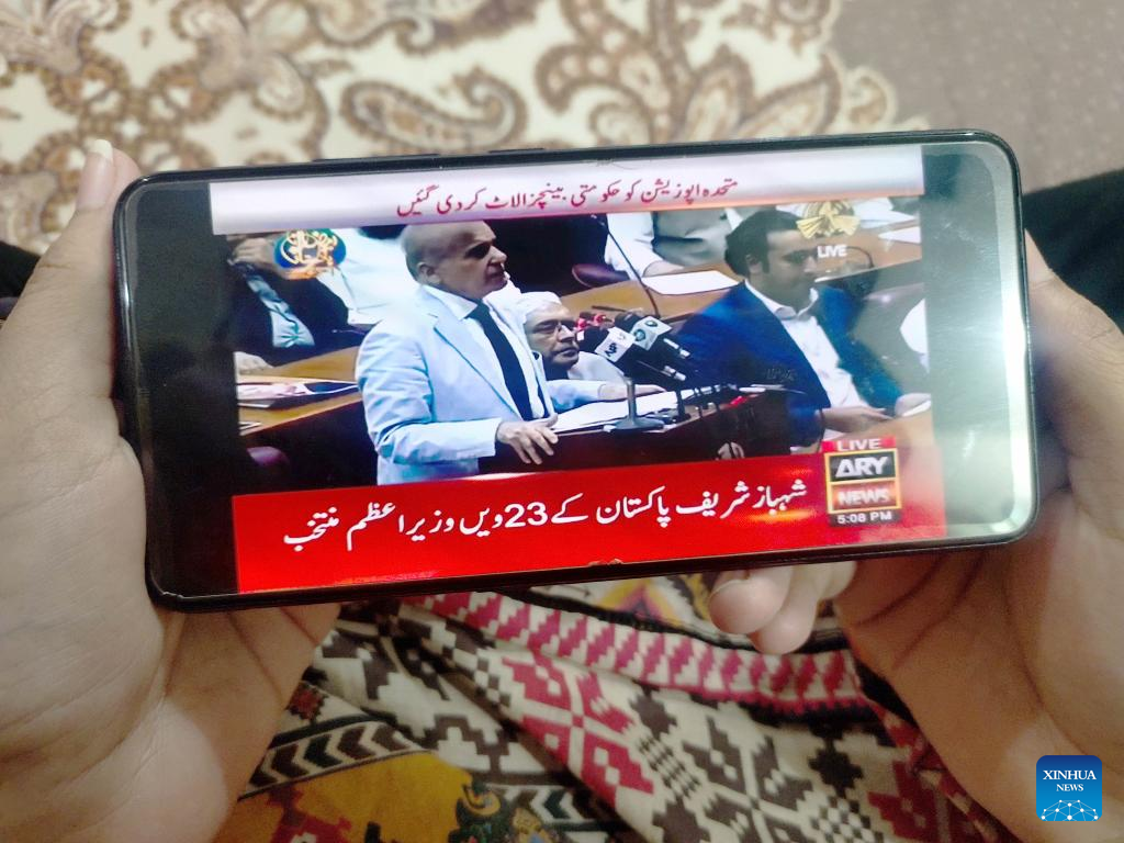 ISLAMABAD, April 11 (Xinhua) -- The opposition's joint candidate Shahbaz Sharif was elected as the 23rd Prime Minister of Pakistan on Monday, said an official here.