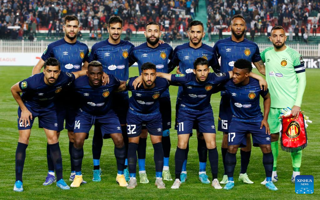 Esperance's starters pose for group photos before the CAF Champions League 2022 Quarter Final Leg One football match between Es Setif and Esperance at 5th July Stadium in Algiers, Algeria, April 15, 2022. (Str/Xinhua)