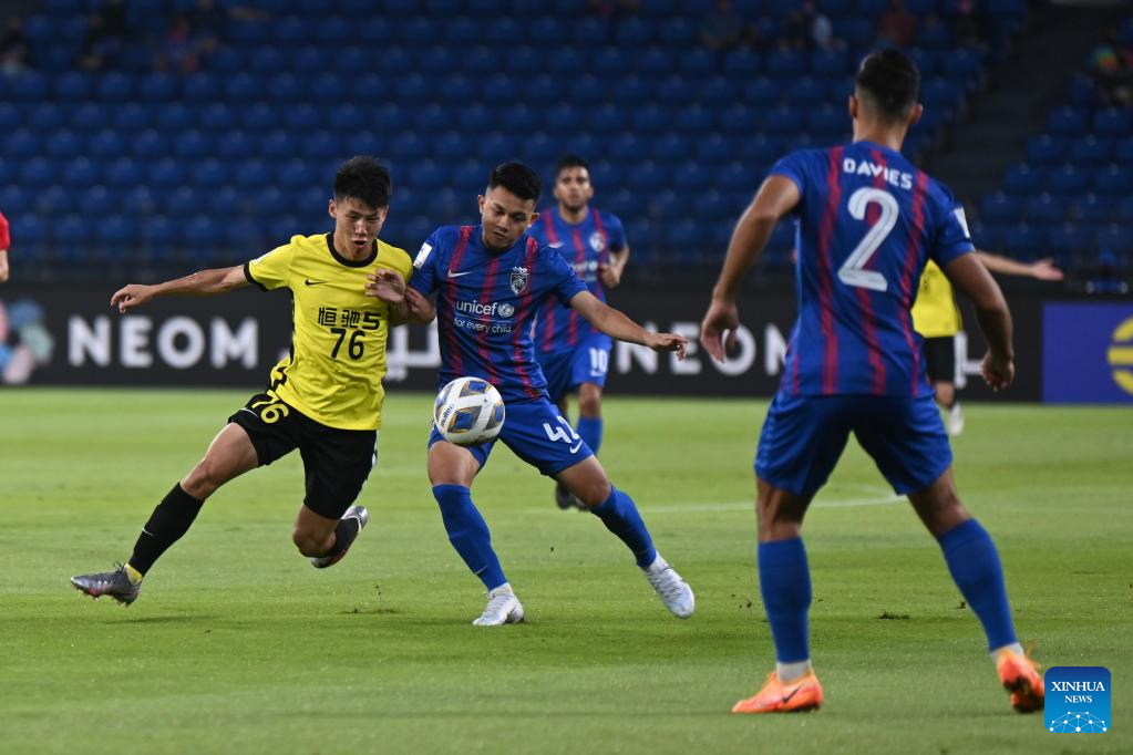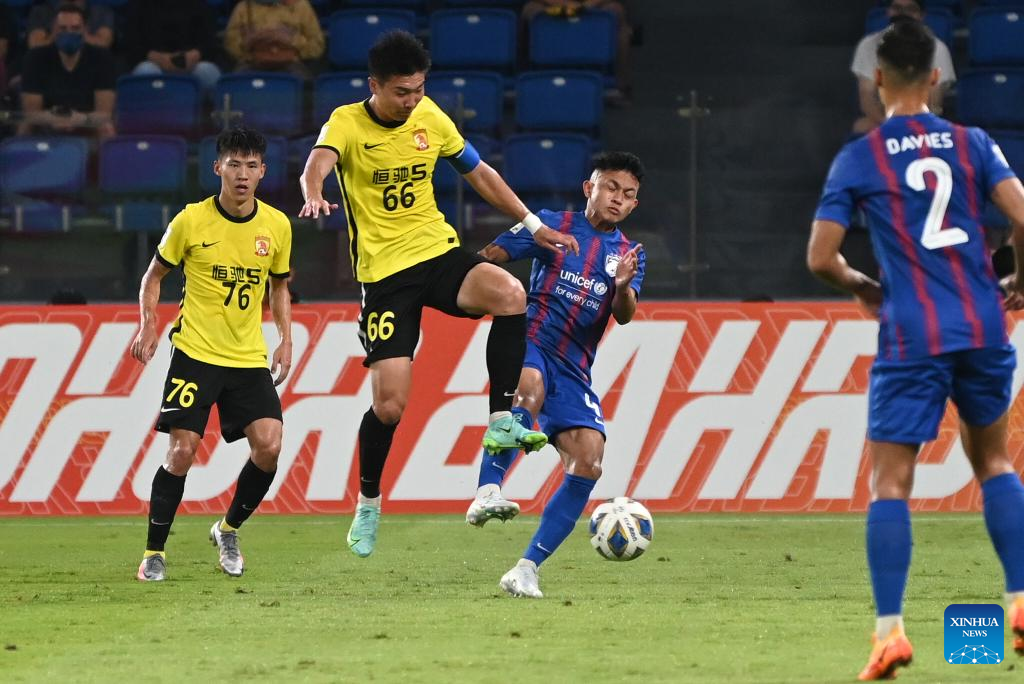 Yang Xin (2nd L) of Guangzhou FC competes during the AFC Champions League 2022 Group I match between Johor Darul Ta'zim of Malaysia and Guangzhou FC of China in Johor Bahru, Malaysia, April 15, 2022. (Xinhua/Zhu Wei)