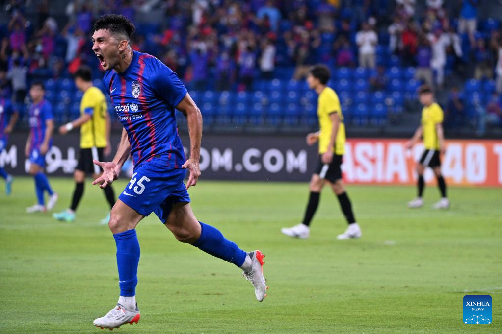 Fernando Forestieri of Johor Darul Ta'zim celebrates scoring during the AFC Champions League 2022 Group I match between Johor Darul Ta'zim of Malaysia and Guangzhou FC of China in Johor Bahru, Malaysia, April 15, 2022. (Photo by Chong Voon Chung/Xinhua)