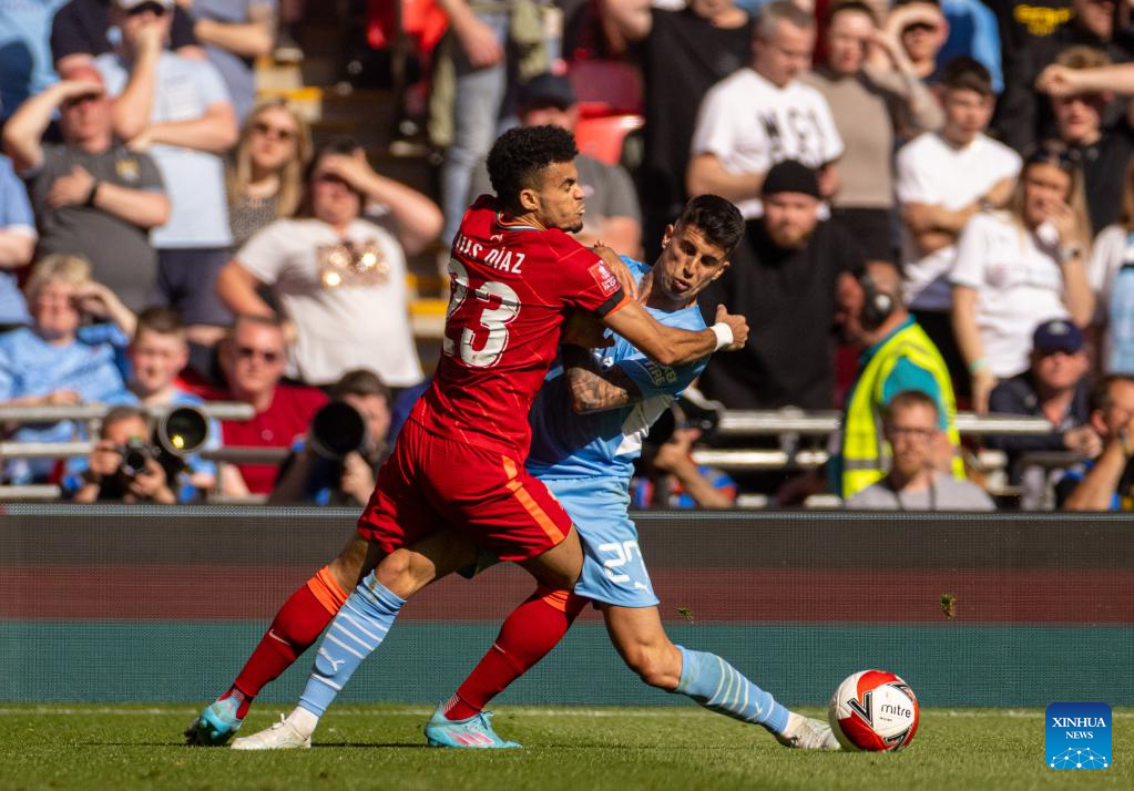 LONDON, April 16 (Xinhua) -- Liverpool booked their place in the FA Cup final with an entertaining 3-2 win against Manchester City in the first semi-final at Wembley on Saturday afternoon.