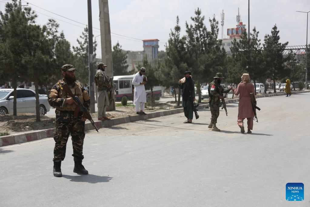 Afghan security force members stand guard near the site of a blast in Kabul, Afghanistan, April 21, 2022. At least two children were injured in a blast in Police District 5 of Afghanistan's capital Kabul on Thursday, Interior Ministry spokesperson Abdul Nafi said. It was a roadside bomb that injured two children in Niazbeg area in Police District 5 on Thursday morning, Nafi said without providing more details. (Photo by Saifurahman Safi/Xinhua)