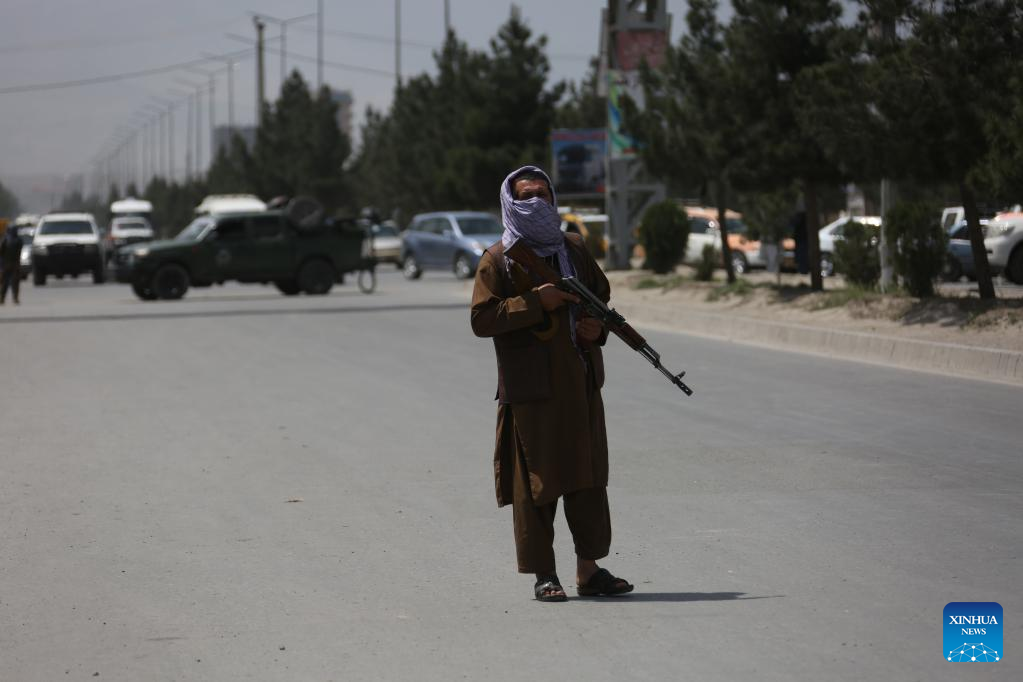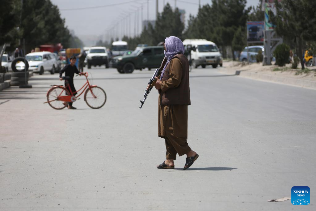 An Afghan security force member stands guard near the site of a blast in Kabul, Afghanistan, April 21, 2022. At least two children were injured in a blast in Police District 5 of Afghanistan's capital Kabul on Thursday, Interior Ministry spokesperson Abdul Nafi said. It was a roadside bomb that injured two children in Niazbeg area in Police District 5 on Thursday morning, Nafi said without providing more details. (Photo by Saifurahman Safi/Xinhua)