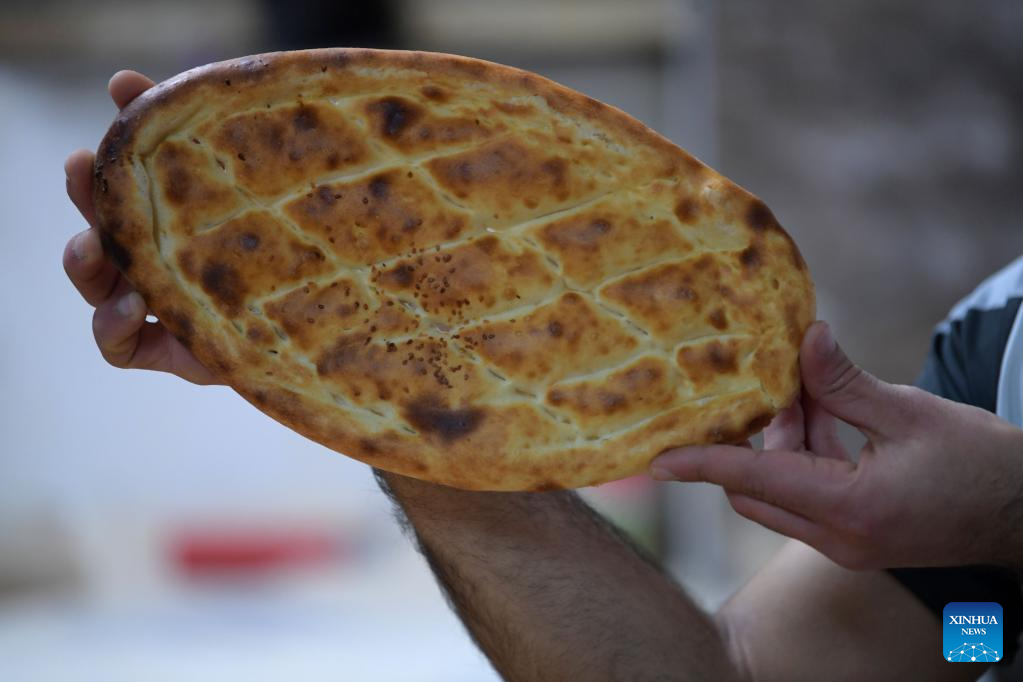 Photo taken on April 20, 2022 shows Ramadan Pide at a bakery in Istanbul, Turkey. (Xinhua/Shadati)