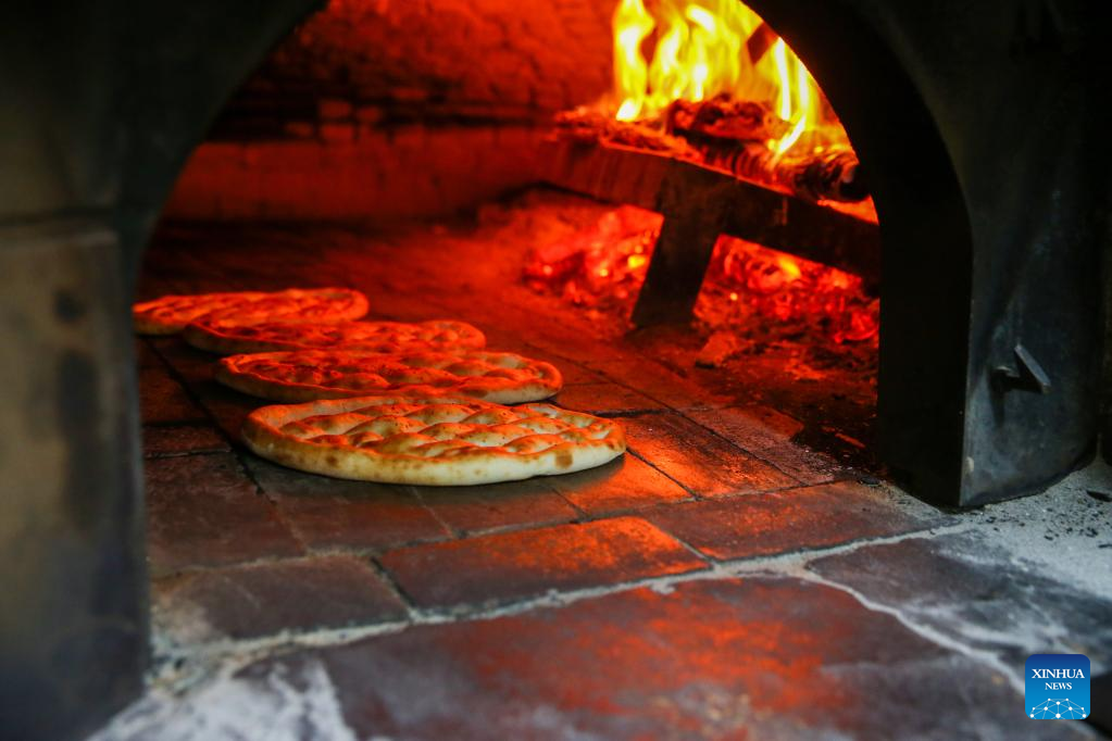 Photo taken on April 20, 2022 shows Ramadan Pide being baked at a bakery in Istanbul, Turkey. (Photo by Unal Cam/Xinhua)