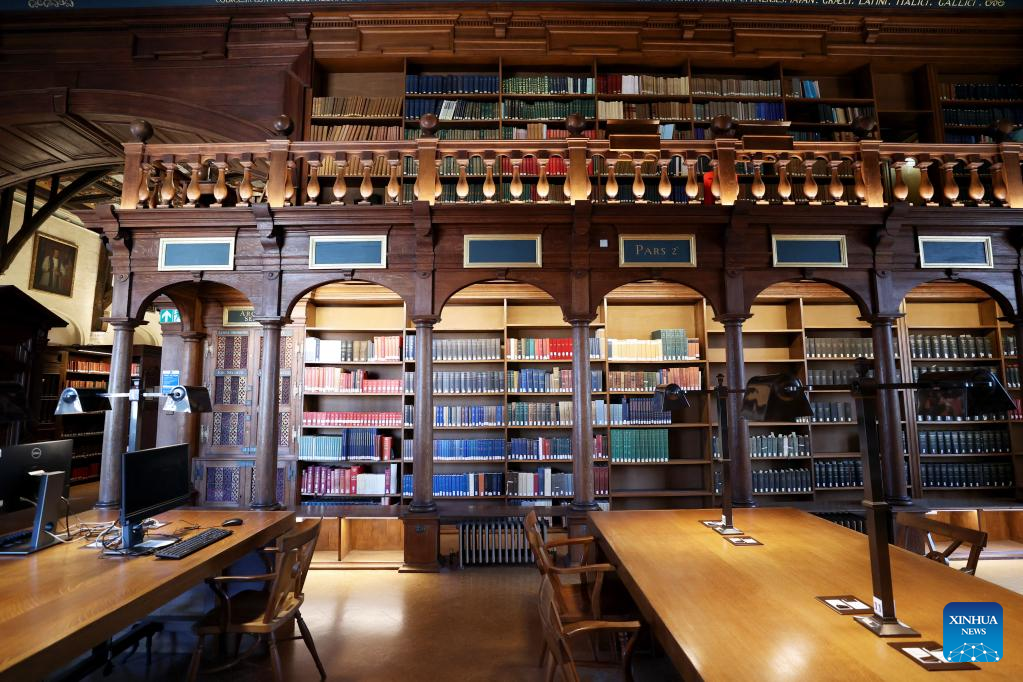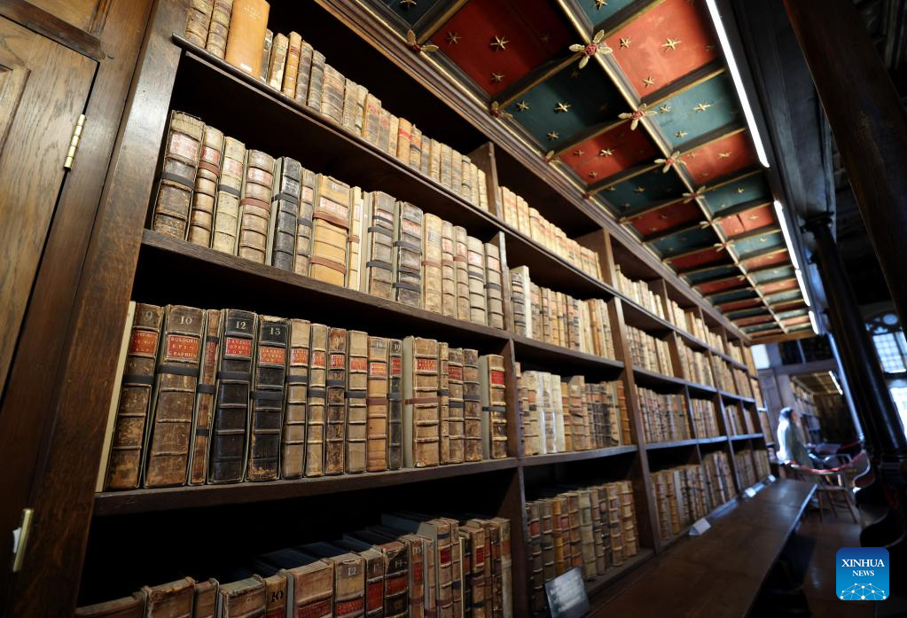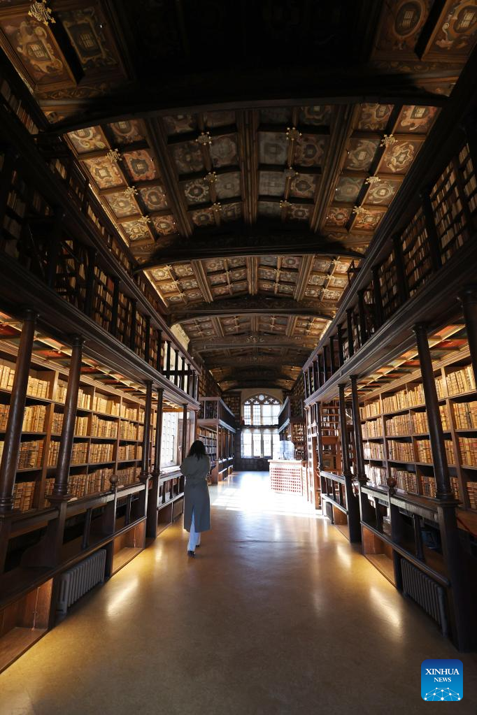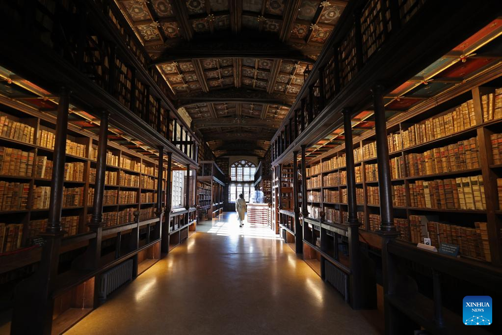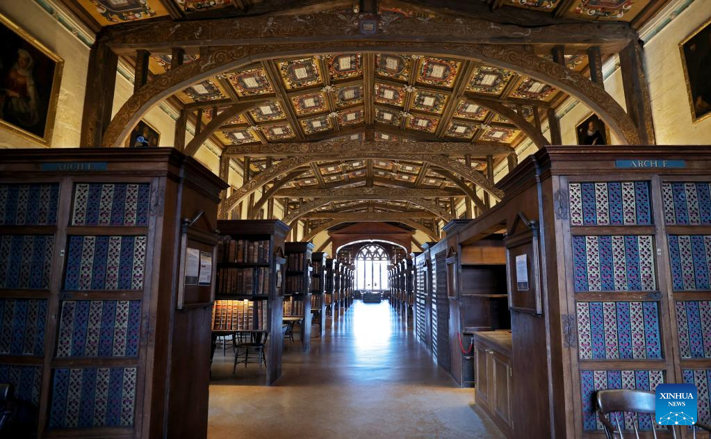 Photo taken on April 21, 2022 shows a view of Duke Humfrey's Library of the Bodleian Libraries in the University of Oxford, Britain. As the library service supporting the University of Oxford, Bodleian Libraries include the principal University library, the Bodleian Library, which has been a library of legal deposit for 400 years, as well as 27 other libraries across Oxford including major research libraries and faculty, department and institute libraries.