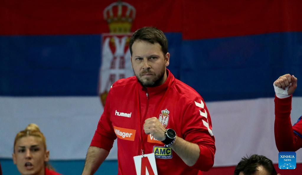 Serbia's head coach Uros Bregar reacts during the women's EHF EURO 2022 phase 2 qualifying handball match between Serbia and Iceland in Zrenjanin, Serbia on April 23, 2022. (Photo by Predrag Milosavljevic/Xinhua)