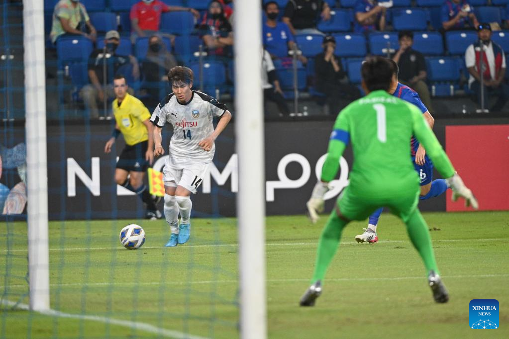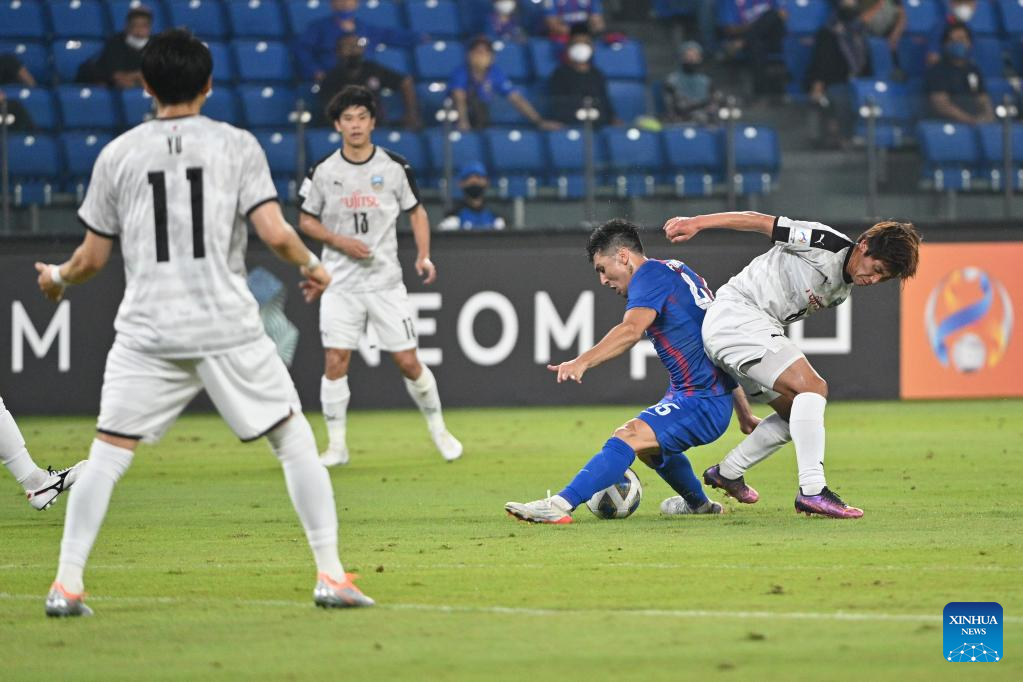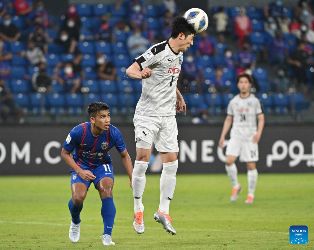 Yasuto Wakizaka (L) of Kawasaki Frontale competes during the AFC Champions League 2022 Group I match between Kawasaki Frontale of Japan and Johor Darul Ta'zim of Malaysia in Johor Bahru, Malaysia, April 24, 2022. Kawasaki Frontale won the match 5-0. (Photo by Chong Voon Chung/Xinhua)